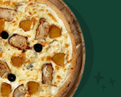 Sauce tomate, mozzarella française, émincés de poulet rôti (Halal), sauce barbecue, crème de cheddar, poivrons frais.